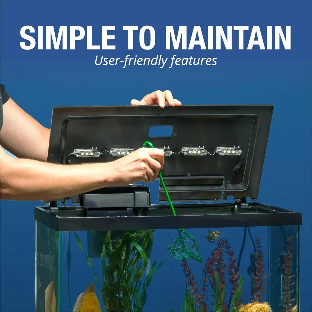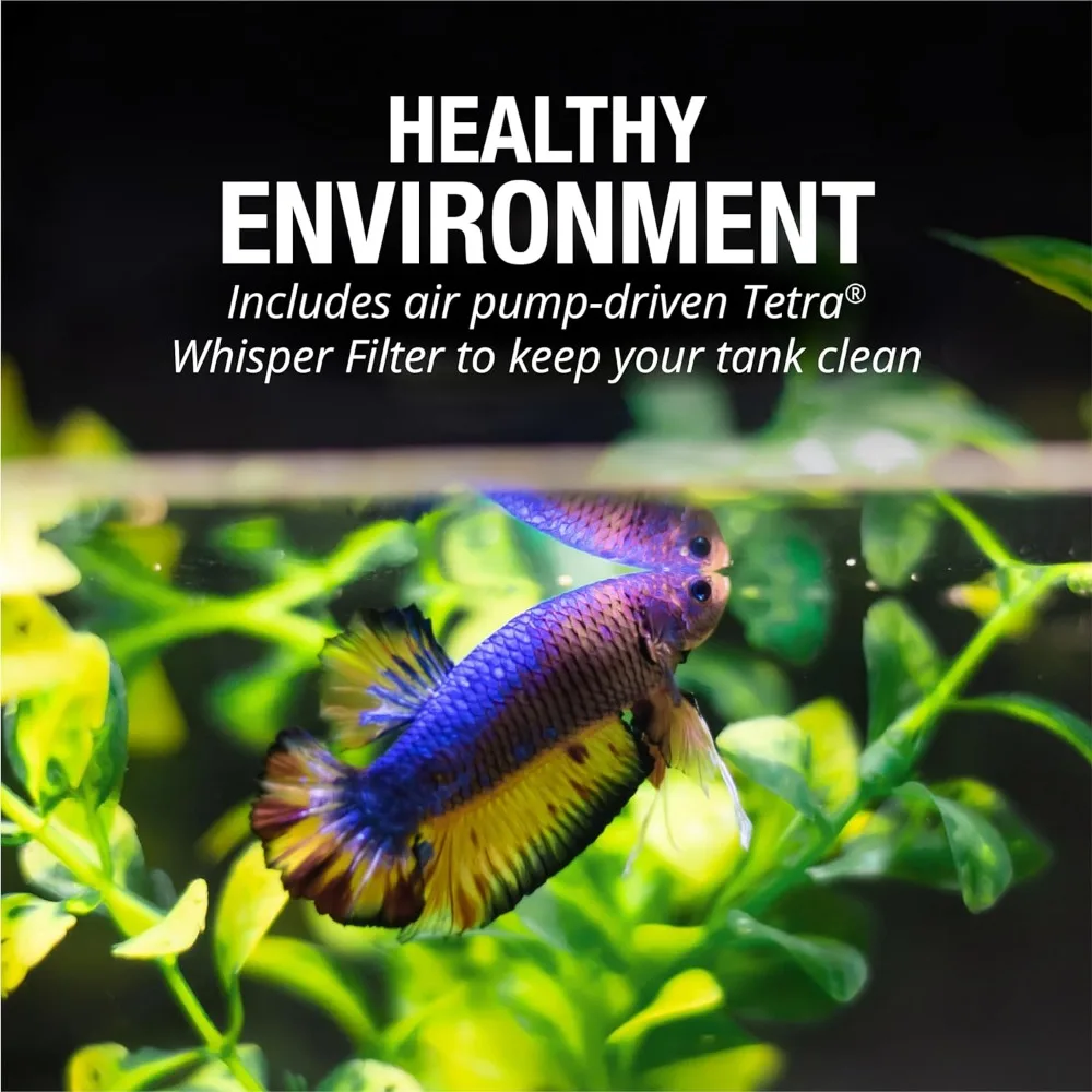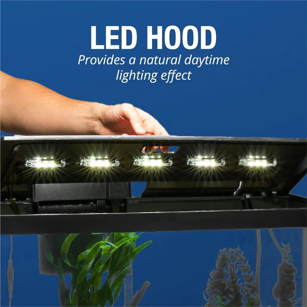 - The Tetra Aquarium comes loaded with an LED hood, that provides a natural daytime effect and a Whisper Filter that is whisper quiet while providing powerful, dependable water flow