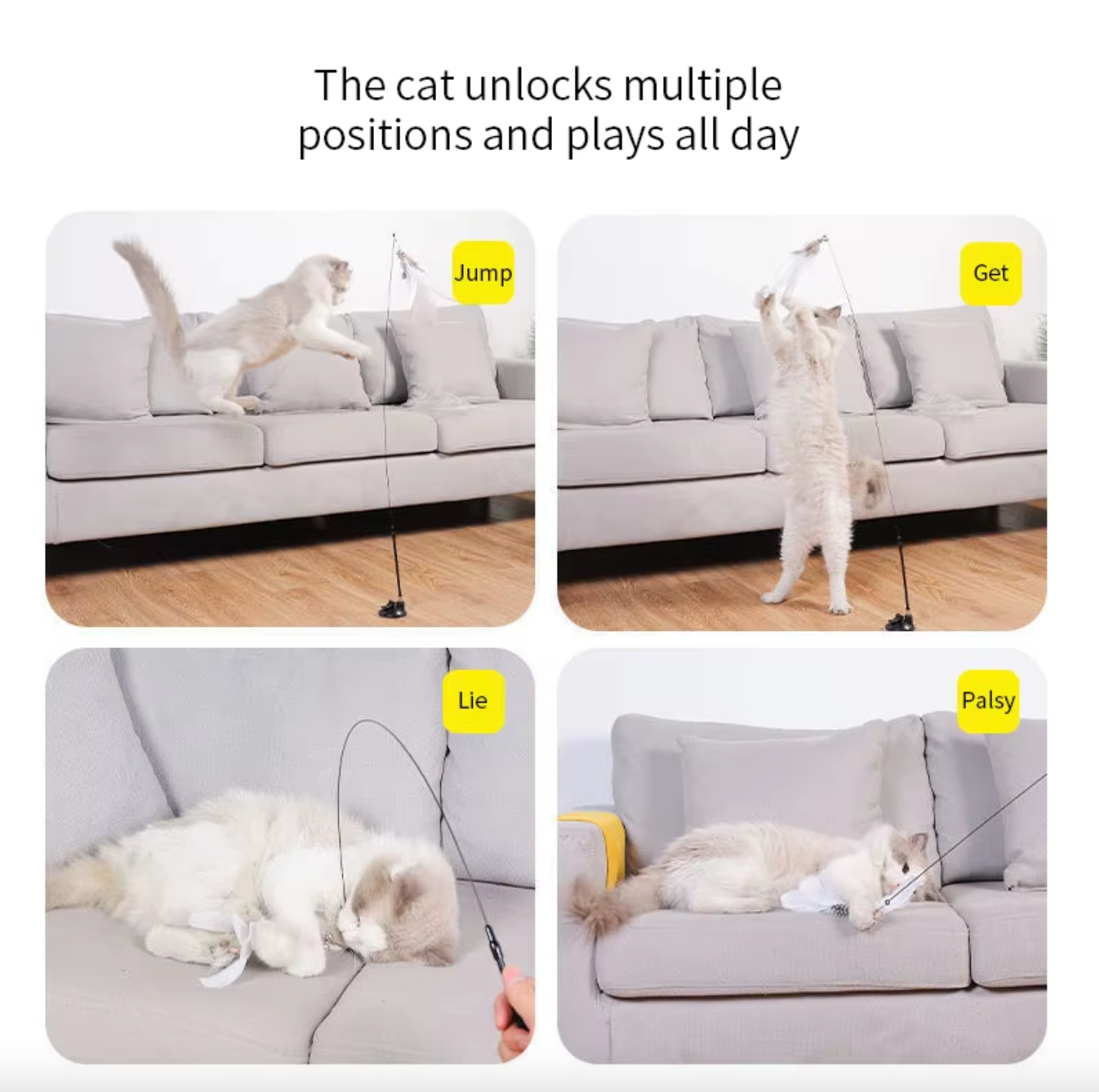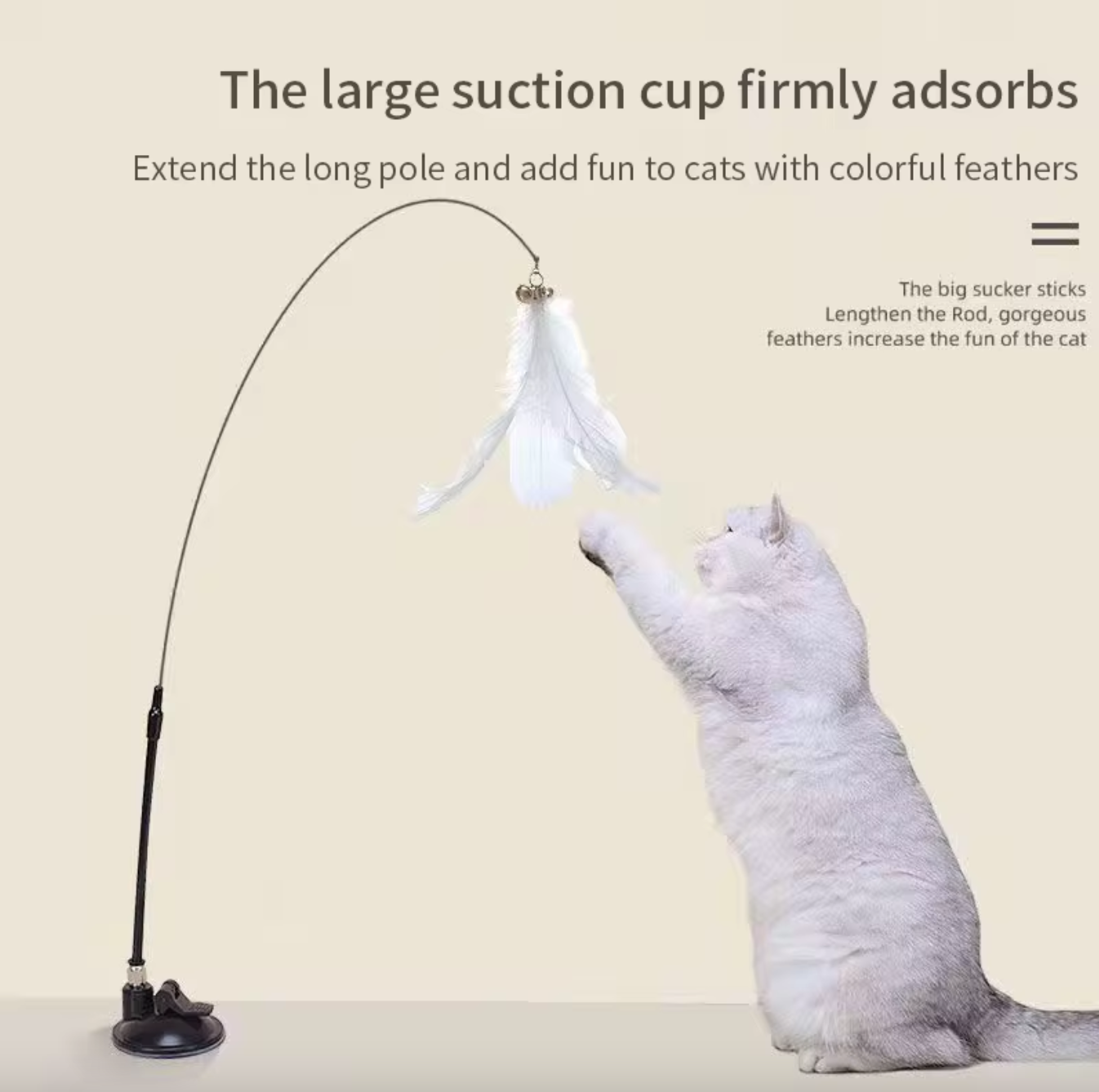 2. Design: The owner can hold the cat toy, or can suck the sucker in any position, fix the place, and let the cat play by itself. The wire is bouncy, the fluttering feathers attract the cat’s attention, and the toy has a small bell that rings when it moves, adding to the fun.